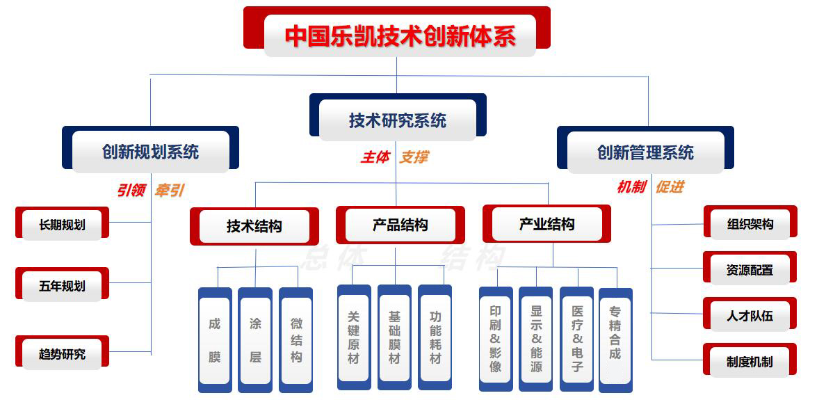 中國樂凱擁有豐富的技術創新資源,建有國家級企業技術中心,高新技術企業、國家級創新示范企業、國家知識產權示范企業、博士后工作站、航天科技集團功能膜材料技術研發中心,CNAS認可國家級分析測試中心,ISO/TC42攝影術國內技術對口單位,全國感光材料、數碼與印刷影像材料、光學功能薄膜材料等三個標準化委員會秘書處依托單位,擁有省級以上創新平臺20余個。